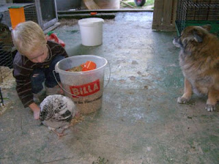 Mein Lieblingshuhn Puppe war mit dabei. Sie ist ja noch ganz jung, aber sie hört schon wenn ich sie rufe und kommt angetapst. Sie ist soo süß, sogar unser Hund mag sie.